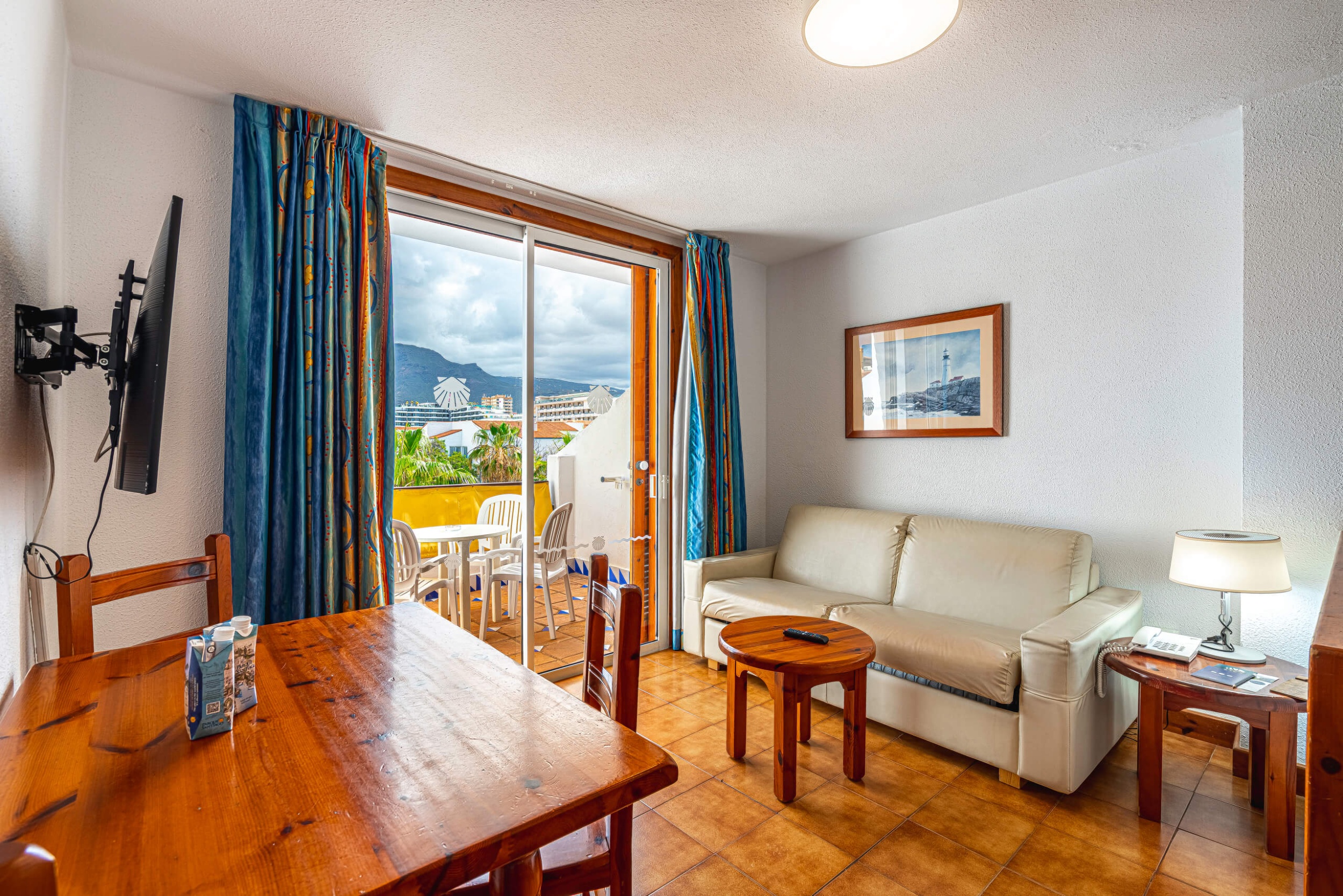 First Stay Real Estate is proud to present for sale this charming studio apartment in the Parque Santiago 3 complex, a hidden gem in the heart of Playa de las Américas, South Tenerife. With 30 square meters of interior space and a generous 9-square-meter terrace overlooking the famous Golden Mile, this property offers a unique opportunity to enjoy the beauty of Tenerife from the comfort of your home.