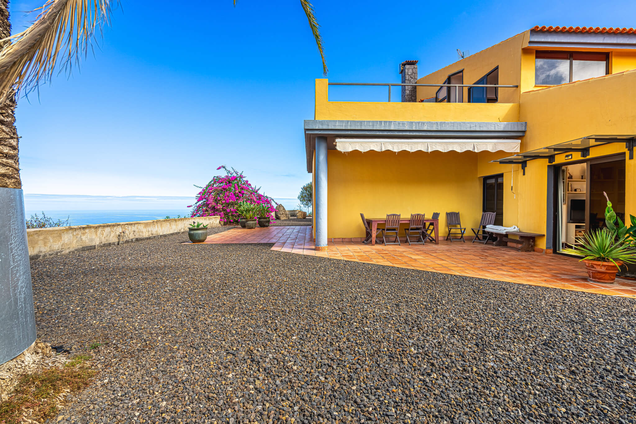 The main house is impressive with its modern yet Canarian architecture, featuring high ceilings and large windows that allow plenty of natural light in while showcasing the fantastic panoramic views of the sea and the majestic Mount Teide. It includes 4 spacious bedrooms, 3 fully equipped bathrooms, and a fitness area with a sauna. Nearly every room and the numerous terraces offer breathtaking views of the Atlantic Ocean.