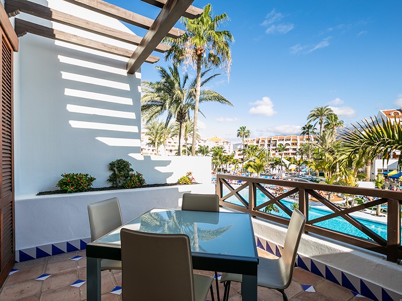 Planta baja: Acceso desde un hermoso jardín frontal con vistas privilegiadas a la piscina principal del complejo. En su interior, encontrarás una cocina totalmente equipada, un baño y un luminoso y espacioso salón perfecto para el descanso y el entretenimiento.
