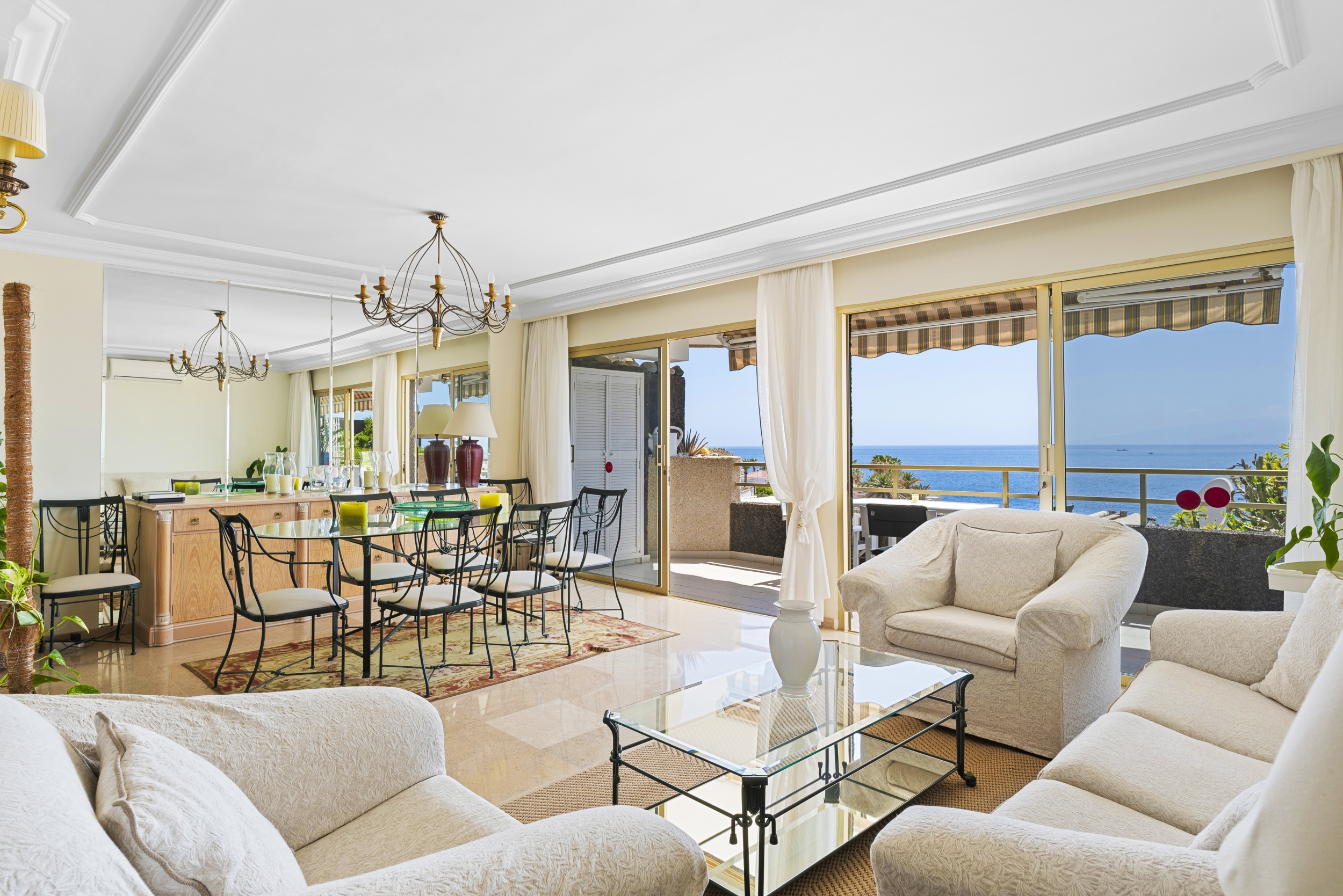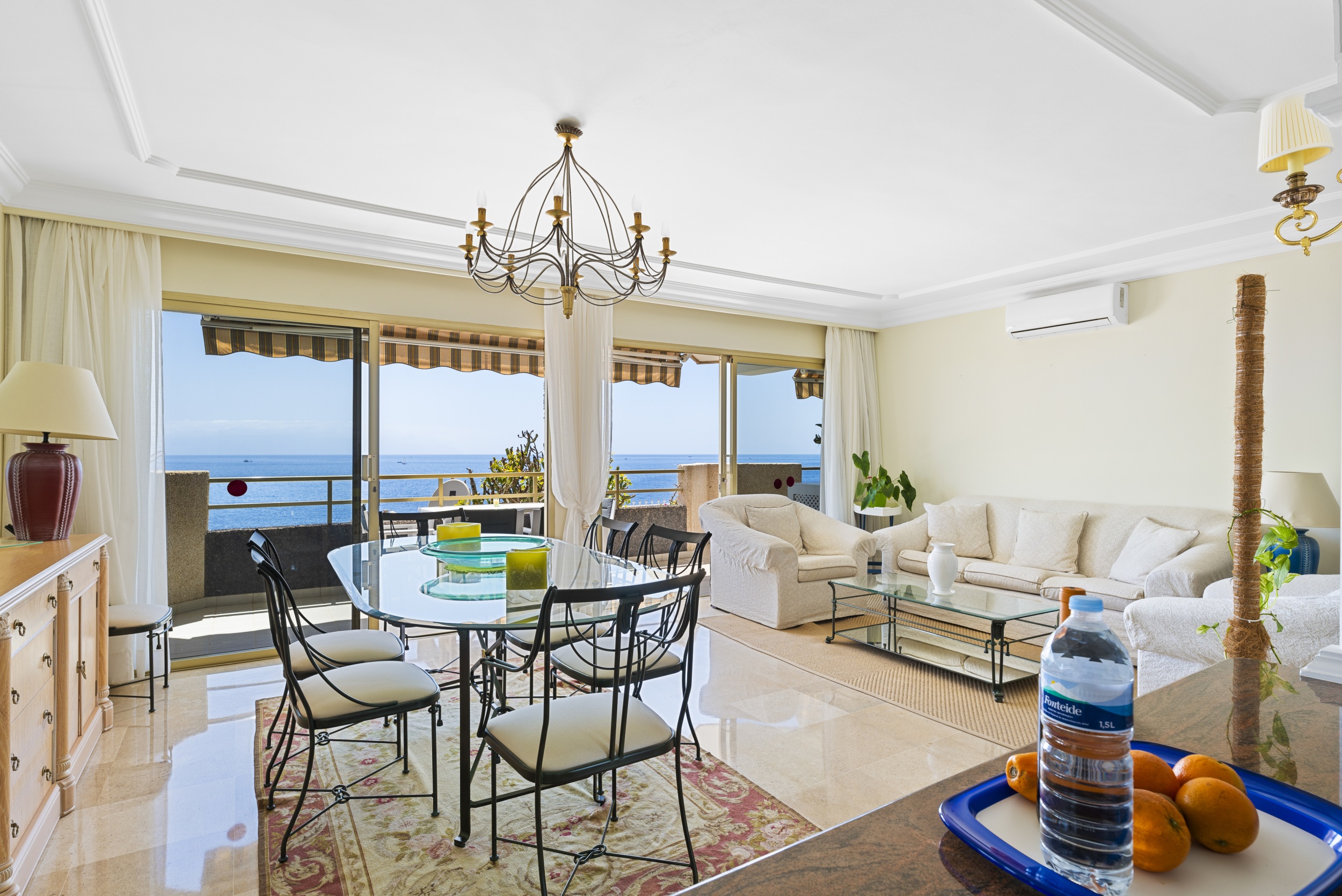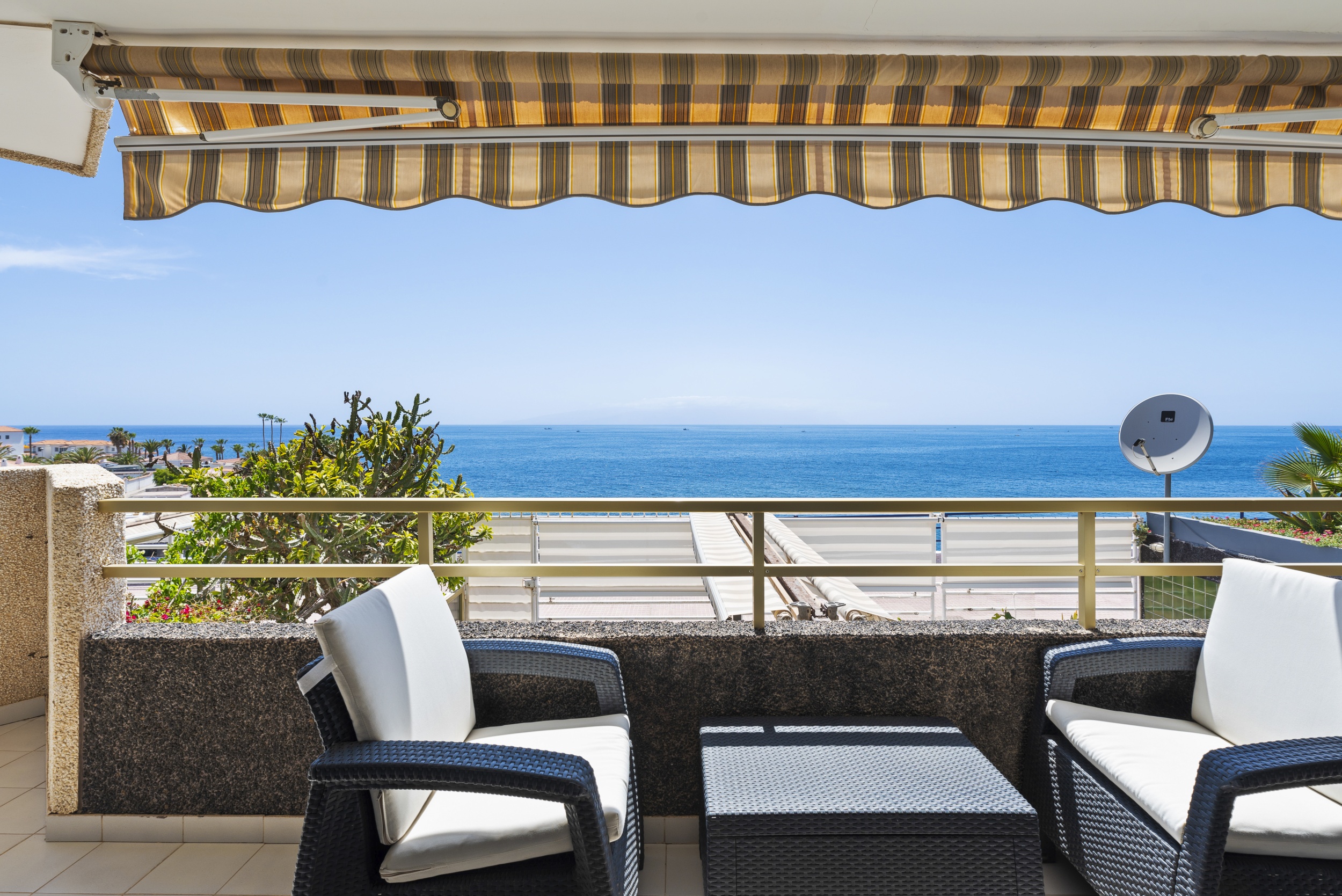 Con una superficie construida de 116 m², la propiedad ofrece dos dormitorios dobles con vistas al mar, dos baños completos, un salón amplio y luminoso, y una gran terraza con impresionantes vistas al océano.