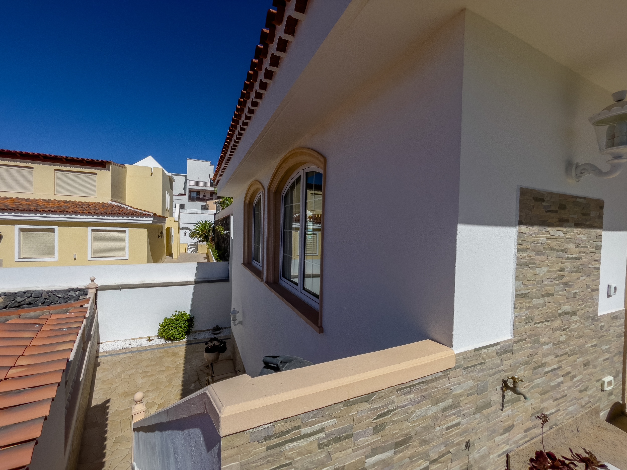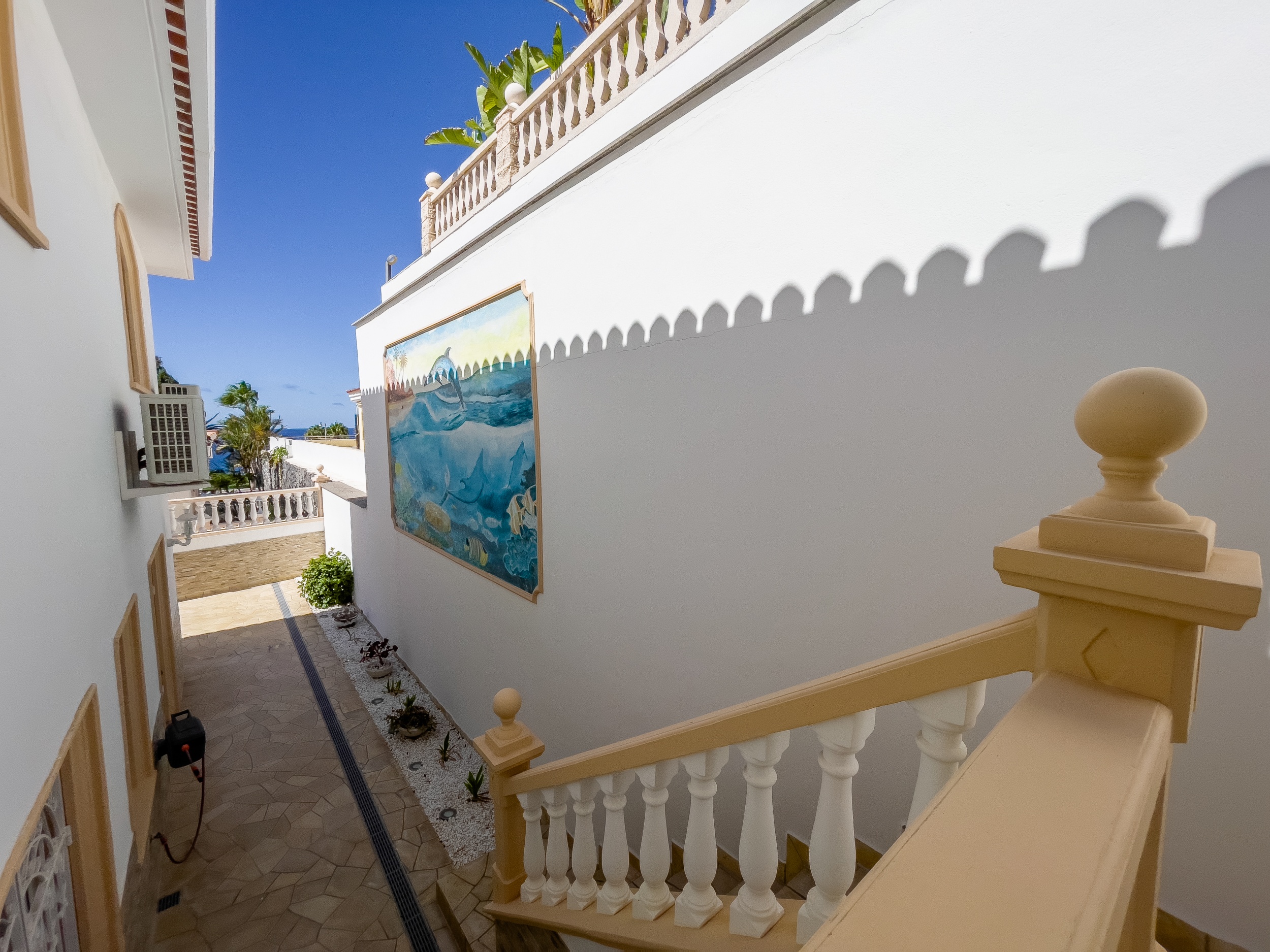 Construída en una parcela de 406m2, la superficie habitable de la casa es de 160m2, garaje y trastero 33m2, terrazas 100m2 y 73m2. El complejo cuenta con muy bonitos jardines y una piscina climatizada. El complejo está situado en primera línea de oceano. Cerca se encuentran las mejores playas del sur de Tenerife Bahía del Duque, Playa Fañabe, centros comerciales, farmacia, restaurantes, bares, etc.