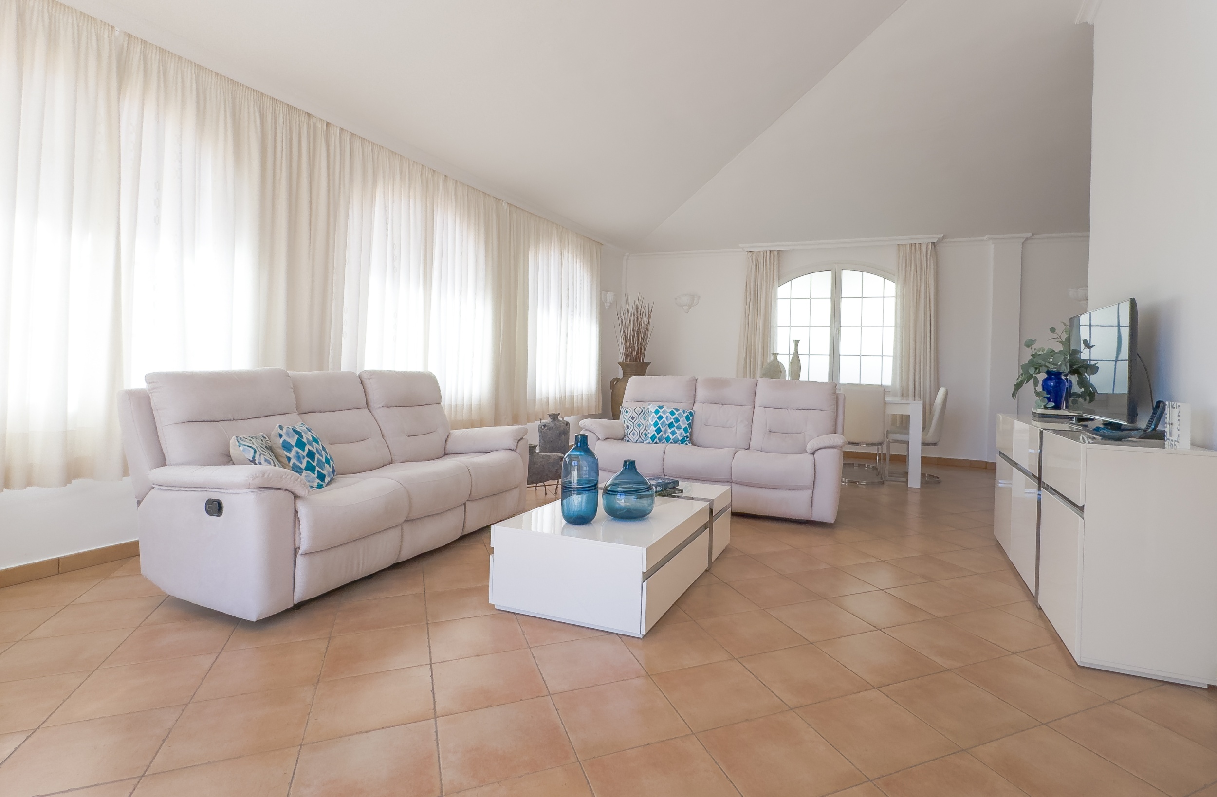 Dos de los dormitorios tienen acceso directo a la terraza. La propiedad incluye además una plaza de aparcamiento privada situada junto a la entrada principal de la villa.